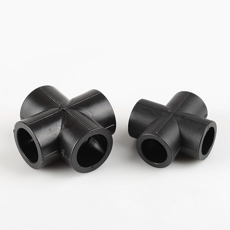 "+" 구성에서 90° 각도로 파이프를 연결하기 위한 HDPE 동일 직경의 크로스 조인트입니다. 이는 일관된 내부 직경과 시스템 압력을 유지하면서 균형 잡힌 흐름을 보장합니다. 수직 배관에 이상적이며 유체 또는 가스 흐름을 고르게 분배합니다.